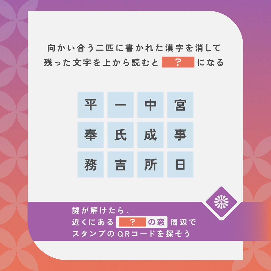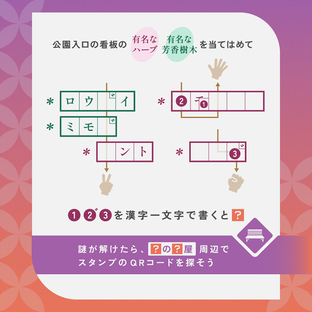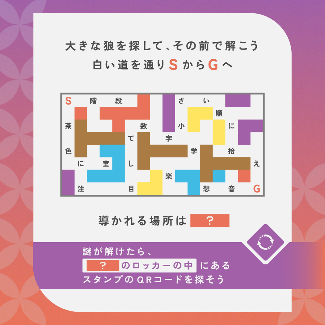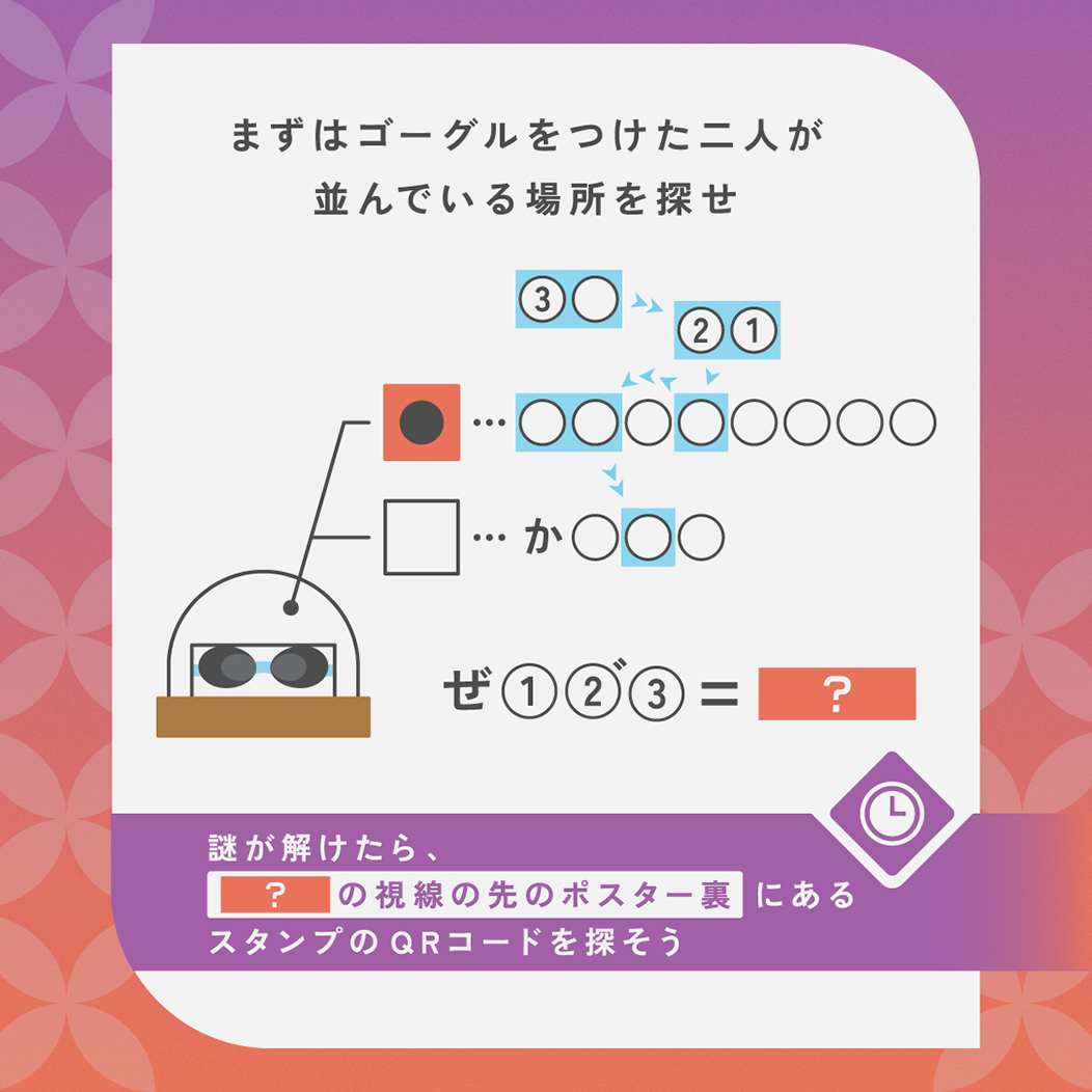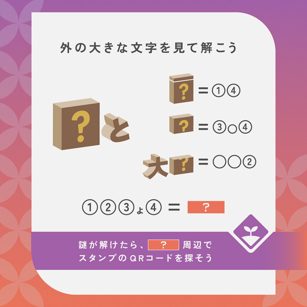謎を解いたら、その答えが示す場所へ。QRコードを読み取ってスタンプを獲得。